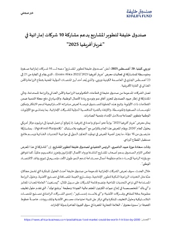 https://news.africa - business.com/post/africas - food - market - could - be - worth  - 1 -  trillion - by - 2030  :ردصملا   1