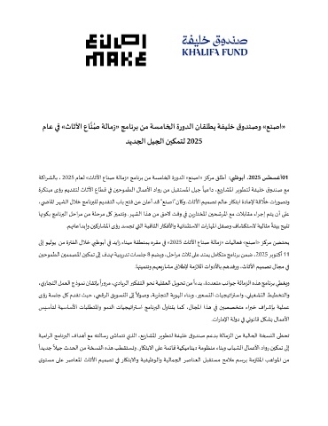 ةكارشلاب ،    2025   ماعل   »ثاثلأا عانص ةلامز« جمانرب نم ةسماخلا ة   رو دلا   »   عنصا«   زكرم    قلطأ       :يبظوبأ   ، 2025    سطسغأ 01