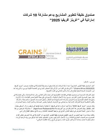 ايقيرفأ زنيرغ“ ضرعم تايلاعف يف ةكراشملل ةطسوتمو ةريغص ةيتارامإ تاكرش 10 ـل همعد ”عيراشملا ريوطتل ةفيلخ قودنص“ نلعأ