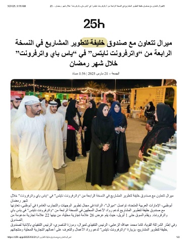 3/24/25, 9:18 AM 25 – نﺎﺿﻣر رﮭﺷ لﻼﺧ ”تﻧورﻓرﺗاو يﺎﺑ سﺎﯾ“ ﻲﻓ ”سﺗﯾﺎﻧ تﻧورﻓرﺗاو“ نﻣ ﺔﻌﺑارﻟا ﺔﺧﺳﻧﻟا ﻲﻓ ﻊﯾرﺎﺷﻣﻟا رﯾوطﺗﻟ ﺔﻔﯾﻠﺧ قودﻧﺻ ﻊﻣ نوﺎﻌﺗﺗ لارﯾﻣH