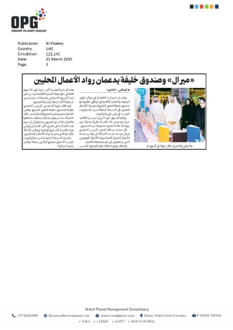 Publication: Al Khaleej Country: UAE Circulation: 121,141 Date: 21 March 2025 Page: 3