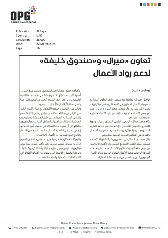 Publication: Al Bayan Country: UAE Circulation: 88,000 Date: 22 March 2025 Page: 16