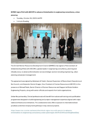 EHRDC signs MoU with AECOM to advance Emiratisation in engineering consultancy, urban