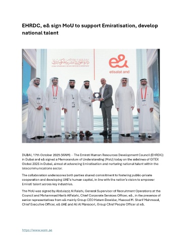 DUBAI, 17th October 2025 (WAM) -- The Emirati Human Resources Development Council (EHRDC)