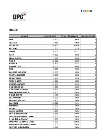 WEBSITE VALUE (IN AED) TOTAL MEDIA REACH NUMBER OF HITS