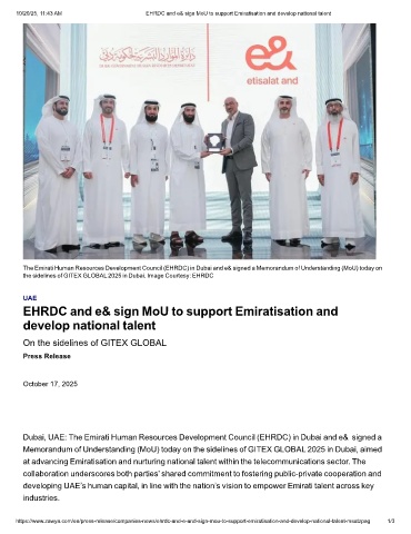 10/20/25, 11:43 AM EHRDC and e& sign MoU to support Emiratisation and develop national talent