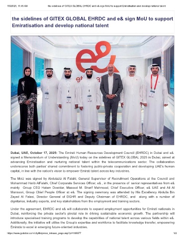 10/20/25, 11:45 AM the sidelines of GITEX GLOBAL EHRDC and e& sign MoU to support Emiratisation and develop national talent