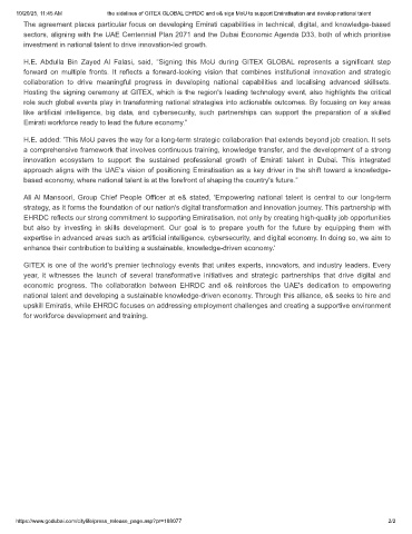 10/20/25, 11:45 AM the sidelines of GITEX GLOBAL EHRDC and e& sign MoU to support Emiratisation and develop national talent