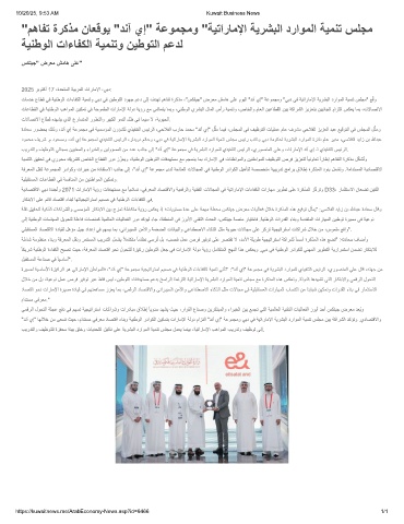 تﺎﻣدﺧ عﺎطﻗ ﻲﻓ ﺔﯾﻧطوﻟا تاءﺎﻔﻛﻟا ﺔﯾﻣﻧﺗو ﻲﺑد ﻲﻓ نﯾطوﺗﻟا دوﮭﺟ مﻋد ﻰﻟإ فدﮭﺗ مھﺎﻔﺗ ةرﻛذﻣ ،"سﻛﺗﯾﺟ" ضرﻌﻣ شﻣﺎھ ﻰﻠﻋ موﯾﻟا "دﻧآ يإ" ﺔﻋوﻣﺟﻣو "ﻲﺑد ﻲﻓ ﺔﯾﺗارﺎﻣﻹا ﺔﯾرﺷﺑﻟا دراوﻣﻟا ﺔﯾﻣﻧﺗ سﻠﺟﻣ" ﻊ ّ ﻗو