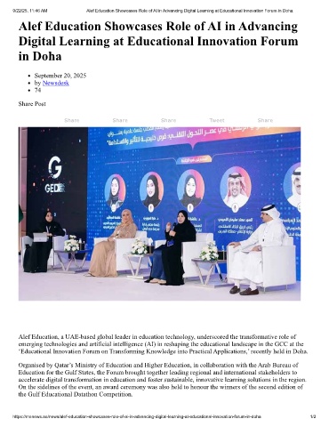 9/22/25, 11:46 AM Alef Education Showcases Role of AI in Advancing Digital Learning at Educational Innovation Forum in Doha