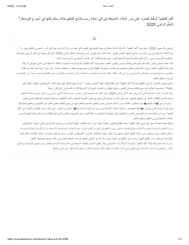وﻛﺳﻧوﯾﻠﻟ ﻲﺳﯾﺋرﻟا رﻘﻣﻟا ﻲﻓ ا ً رﺧؤﻣ مﯾﻗأ يذﻟا ،2025 ﻲﻣﻗرﻟا م ﱡ ﻠﻌﺗﻠﻟ وﻛﺳﻧوﯾﻟا عوﺑﺳأ ﻲﻓ ﺎﮭﺗﻛرﺎﺷﻣ لﻼﺧ كﻟذو ،مﯾﻠﻌﺗﻠﻟ ﻲﻣﻟﺎﻌﻟا دﮭﺷﻣﻟا ﺢﻣﻼﻣ مﺳر ةدﺎﻋإ ﻲﻓ ،ﻲﻋﺎﻧطﺻﻻا ءﺎﻛذﻟا ﺎﻣﯾﺳ