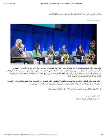 9/9/25, 10:08 AM مﯾﻠﻌﺗﻟا لﺑﻘﺗﺳﻣ مﺳر ﻲﻓ ﻲﻋﺎﻧطﺻﻻا ءﺎﻛذﻟا رود ﻰﻠﻋ ءﻲﺿﺗ «فﻟأ» | ﺔﯾﺗارﺎﻣﻹا ﺞﯾﻠﺧﻟا ﺔﻔﯾﺣﺻ