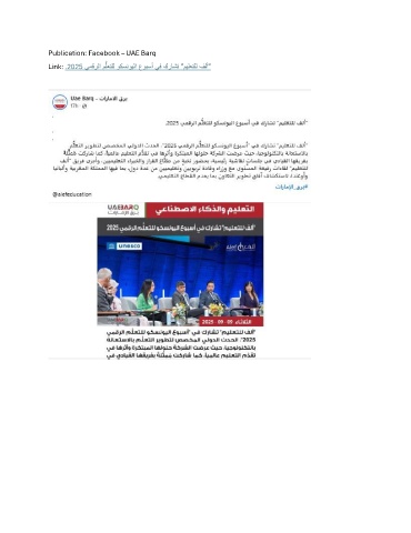 Publication: Facebook – UAE Barq ُّ Link: 2025 يمقرلا ملعتلل وكسنويلا عوبسأ يف كراشت "ميلعتلل فلأ" .