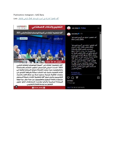 Publication: Instagram – UAE Barq ُّ Link: 2025 يمقرلا ملعتلل وكسنويلا عوبسأ يف كراشت "ميلعتلل فلأ" .