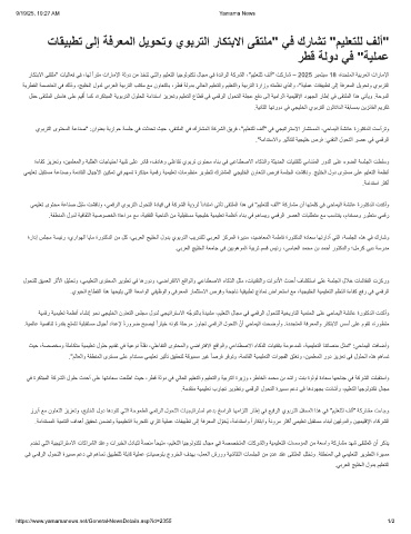 ﺔﯾرطﻘﻟا ﺔﻣﺻﺎﻌﻟا ﻲﻓ كﻟذو ،ﺞﯾﻠﺧﻟا لودﻟ ﻲﺑرﻌﻟا ﺔﯾﺑرﺗﻟا بﺗﻛﻣ ﻊﻣ نوﺎﻌﺗﻟﺎﺑ ،رطﻗ ﺔﻟودﺑ ﻲﻟﺎﻌﻟا مﯾﻠﻌﺗﻟاو مﯾﻠﻌﺗﻟاو ﺔﯾﺑرﺗﻟا ةرازو ﮫﺗﻣظﻧ يذﻟاو ،"ﺔﯾﻠﻣﻋ تﺎﻘﯾﺑطﺗ ﻰﻟإ ﺔﻓرﻌﻣﻟا لﯾوﺣﺗو يوﺑرﺗﻟا