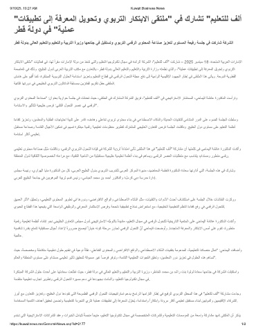رﺎﻛﺗﺑﻻا ﻰﻘﺗﻠﻣ" تﺎﯾﻟﺎﻌﻓ ﻲﻓ ،ﺎﮭﻟ ًارﻘﻣ تارﺎﻣﻹا ﺔﻟود نﻣ ذﺧﺗﺗ ﻲﺗﻟاو مﯾﻠﻌﺗﻟا ﺎﯾﺟوﻟوﻧﻛﺗ لﺎﺟﻣ ﻲﻓ ةدﺋارﻟا ﺔﻛرﺷﻟا ،"مﯾﻠﻌﺗﻠﻟ فﻟأ" تﻛرﺎﺷ – 2025 رﺑﻣﺗﺑﺳ 18 ،ةدﺣﺗﻣﻟا ﺔﯾﺑرﻌﻟا تارﺎﻣﻹا