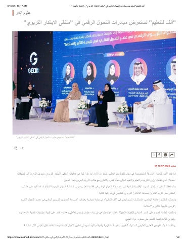 9/19/25, 10:17 AM "رﺎﺑﺧﻸﻟ دﺎﺣﺗﻻا - "يوﺑرﺗﻟا رﺎﻛﺗﺑﻻا ﻰﻘﺗﻠﻣ" ﻲﻓ ﻲﻣﻗرﻟا لوﺣﺗﻟا تاردﺎﺑﻣ ضرﻌﺗﺳﺗ "مﯾﻠﻌﺗﻠﻟ فﻟأ