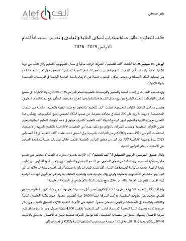 ﺔﻟود ﻦﻣ ﺬﺨﺘﺗ ي�ﻟاو ﻢﻴﻠﻌﺘﻟا ﺎﻴﺟﻮﻟﻮﻨﻜﺗ لﺎﺠﻣ �� ﺎﻴﳌﺎﻋ ةﺪﺋاﺮﻟا ﺔﻛﺮﺸﻟا ،"ﻢﻴﻠﻌﺘﻠﻟ ﻒﻟأ" ﺖﻘﻠﻃأ : 2025 ��ﻤﺘبﺳ 03 ،ي�ﻇﻮﺑأ