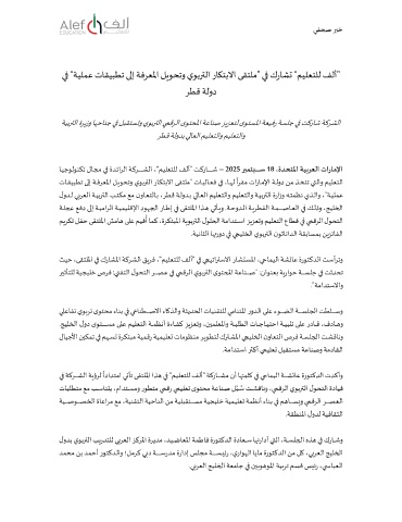 ﺎــﻴﺟﻮﻟﻮﻨﻜﺗ لﺎــﺠﻣ �� ةﺪــﺋاﺮﻟا ﺔــﻛﺮـــــــــــــﺸﻟا ،"ﻢﻴﻠﻌﺘﻠﻟ ﻒﻟأ" ﺖــﻛرﺎــــــــــــــﺷ – 2025 ��ﻤﺘبــــــــــــﺳ 18 ، ةﺪــﺤﺘﳌا ﺔــﻴ�ﺮﻌﻟا تارﺎــﻣﻹا