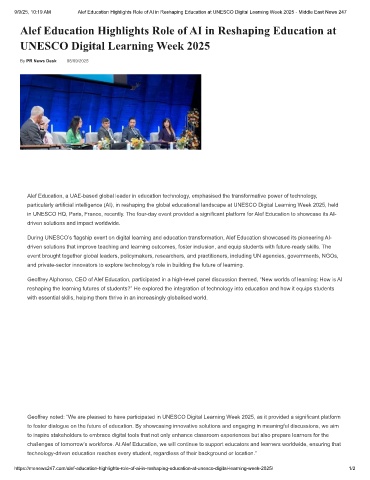 9/9/25, 10:19 AM Alef Education Highlights Role of AI in Reshaping Education at UNESCO Digital Learning Week 2025 - Middle East News 247