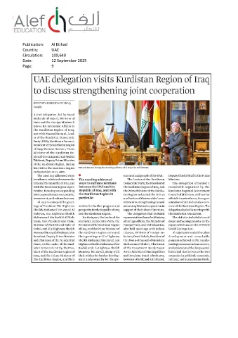 Publication: Al Etihad Country: UAE Circulation: 109,640 Date: 12 September 2025 Page: 9