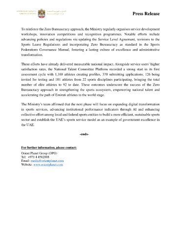 sector and establish the UAE’s sports service model as an example of government excellence in