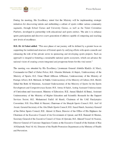Ministry of Sports; H.E. Omar Obaid AlHesan AlShamsi, Undersecretary of the Ministry of