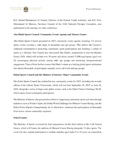 The Ministry of Sports reviewed the final preparations for the third edition of the UAE School