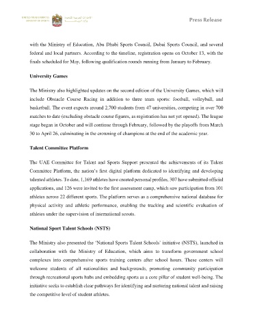 with the Ministry of Education, Abu Dhabi Sports Council, Dubai Sports Council, and several