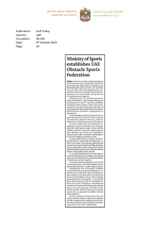 Publication: Gulf Today Country: UAE Circulation: 49,500 Date: 07 October 2025 Page: 20