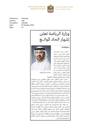 Publication: Al Etihad Country: UAE Circulation: 109,640 Date: 07 October 2025 Page: 33