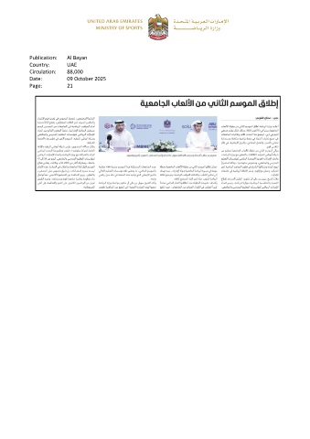 Publication: Al Bayan Country: UAE Circulation: 88,000 Date: 09 October 2025 Page: 21