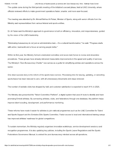 10/29/25, 11:41 AM UAE Ministry of Sports speeds up services with 'Zero Bureaucracy’ drive - Aletihad News Center