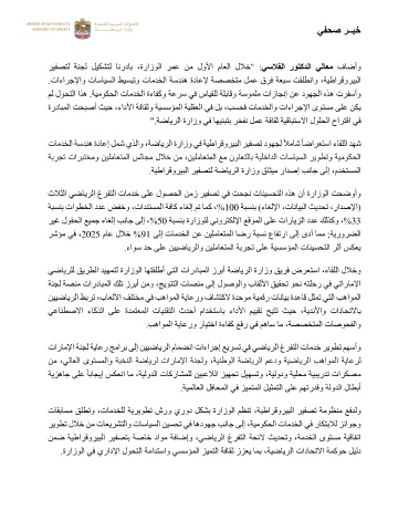 تﺎﻣﺪﺨﻟا ﺔﺳﺪﻨھ ةدﺎﻋإ ﻞﻤﺷ يﺬﻟاو ،ﺔﺿﺎﯾﺮﻟا ةرازو ﻲﻓ ﺔﯿطاﺮﻗوﺮﯿﺒﻟا ﺮﯿﻔﺼﺗ دﻮﮭﺠﻟ ًﻼﻣﺎﺷ ًﺎﺿاﺮﻌﺘﺳا ءﺎﻘﻠﻟا ﺪﮭﺷ