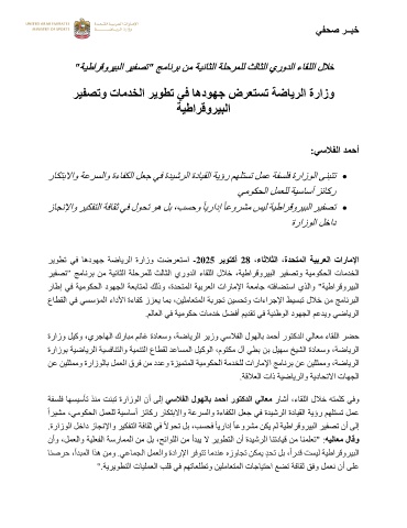 ﺮﯾﻮﻄﺗ ﻲﻓ ﺎھدﻮﮭﺟ ﺔﺿﺎﯾﺮﻟا ةرازو ﺖﺿﺮﻌﺘﺳا - 2025 ﺮﺑﻮﺘﻛأ 28 ،ءﺎﺛﻼﺜﻟا ،ةﺪﺤﺘﻤﻟا ﺔﯿﺑﺮﻌﻟا تارﺎﻣﻹا