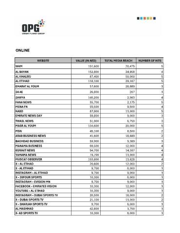 WEBSITE VALUE (IN AED) TOTAL MEDIA REACH NUMBER OF HITS