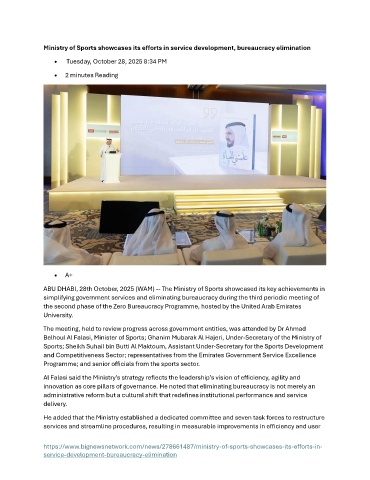 ABU DHABI, 28th October, 2025 (WAM) -- The Ministry of Sports showcased its key achievements in