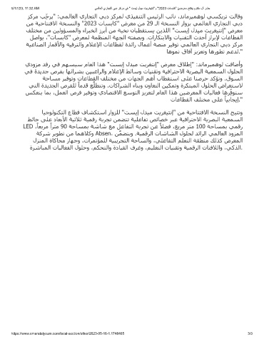 5/17/23, 11:32 AM ﻲﻣﻟﺎﻌﻟا يرﺎﺟﺗﻟا ﻲﺑد زﻛرﻣ ﻲﻓ " تﺳﯾإ لدﯾﻣ تﯾرﻐﯾﺗﻧإ"و "2023 تﺎﺳﺑﺎﻛ" ّ ﻲﺿرﻌﻣ ﺢﺗﺗﻔﯾ موﺗﻛﻣ لآ رﺷﺣ
