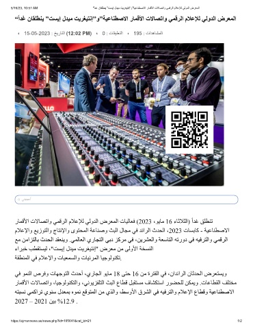 5/16/23, 10:57 AM “ًادﻏ نﺎﻘﻠطﻧﯾ ”تﺳﯾإ لدﯾﻣ تﯾرﻐﯾﺗﻧإ”و”ﺔﯾﻋﺎﻧطﺻﻻا رﺎﻣﻗﻷا تﻻﺎﺻﺗاو ﻲﻣﻗرﻟا مﻼﻋﻺﻟ ﻲﻟودﻟا ضرﻌﻣﻟا