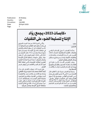 Publication: Al Khaleej Country: UAE Circulation: 150,000 Date: 28 April 2023 Page: 7