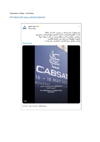 Publica�on: Twiter – Al Khaleej Link: 2023 تﺎﺳﺑﺎﻛ" ضرﻌﻣ نﻣ 29 ﺔﺧﺳﻧﻟا تﺎﯾﻟﺎﻌﻓ مﺎﺗﺧ"