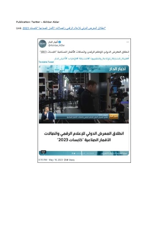 Publica�on: Twiter – Akhbar Aldar Link: 2023 تﺎﺳﺑﺎﻛ“ ﺔﯾﻋﺎﻧﺻﻟا رﺎﻣﻗﻷا تﻻﺎﺻﺗاو ﻲﻣﻗرﻟا مﻼﻋﻺﻟ ﻲﻟودﻟا ضرﻌﻣﻟا قﻼطﻧا”
