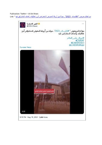Publication: Twitter – Al Ain News Link: " هيف نيكراشملا فادهأو هتايلاعف زربأ ضارعتسلا ضرعملا ةقورأ نيب ةلوج .."2023_تاسباك# " ضرعم ماتتخا عم