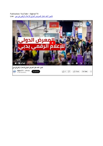 Publication: YouTube – Alghad TV Link: يبد يف يمقرلا ملاعلإل يلودلا ضرعملا لخاد دغلا اريماك