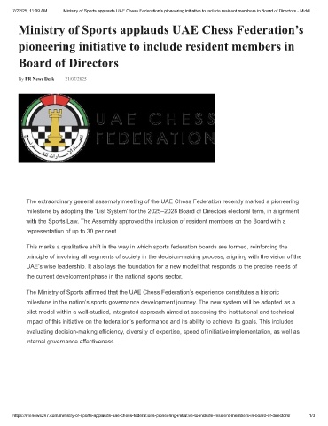 https://menews247.com/ministry-of-sports-applauds-uae-chess-federations-pioneering-initiative-to-include-resident-members-in-board-of-directors/ 1/3