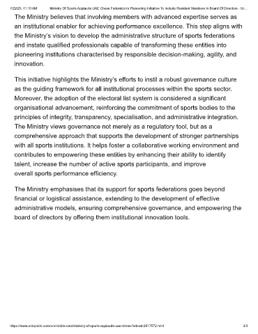 7/22/25, 11:10 AM Ministry Of Sports Applauds UAE Chess Federation’s Pioneering Initiative To Include Resident Members In Board Of Directors - Ur…