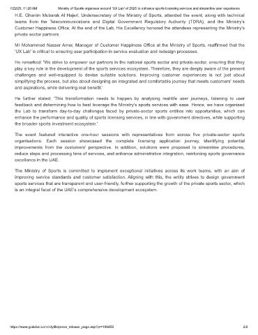 Mr Mohammed Nasser Amer, Manager of Customer Happiness Office at the Ministry of Sports, reaffirmed that the