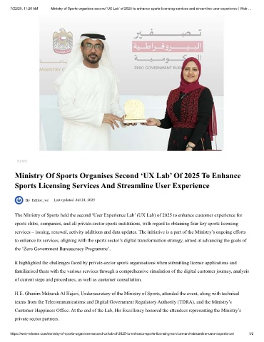 7/22/25, 11:20 AM Ministry of Sports organises second ‘UX Lab’ of 2025 to enhance sports licensing services and streamline user experience | Web …
