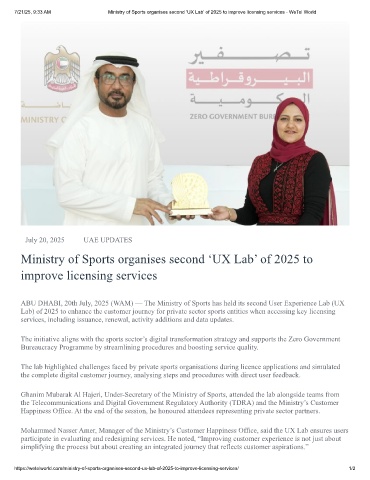 7/21/25, 9:33 AM Ministry of Sports organises second ‘UX Lab’ of 2025 to improve licensing services - WeTel World