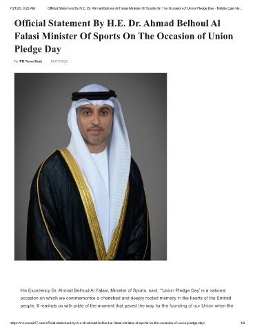 7/21/25, 9:20 AM  Official Statement By H.E. Dr. Ahmad Belhoul Al Falasi Minister Of Sports On The Occasion of Union Pledge Day - Middle East Ne…